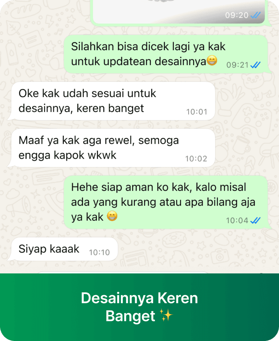 Kami menjamin kepuasan Anda dengan desain profesional, harga terjangkau, ANTI ribet dan Bergaransi.